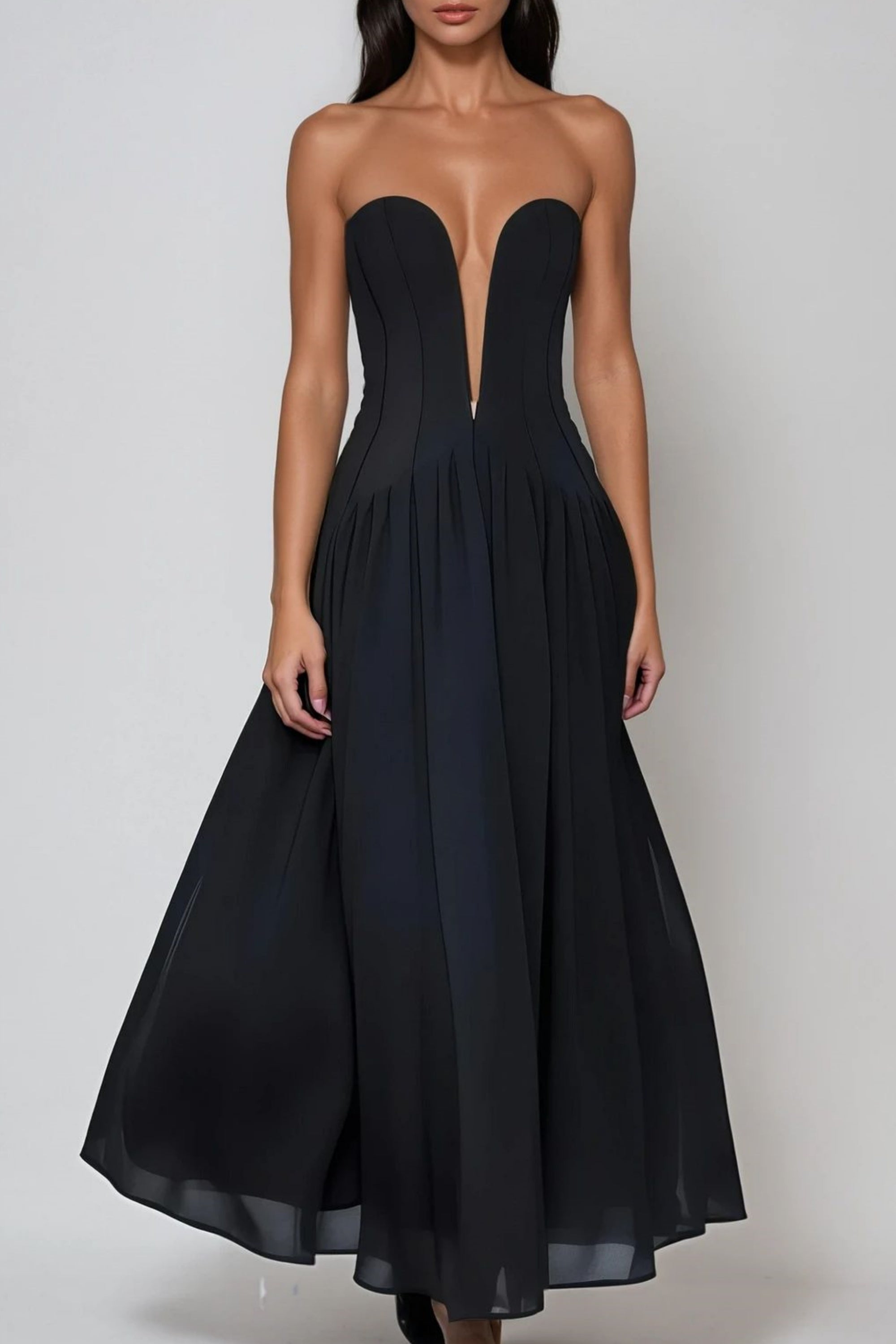 Nathalie Black Sweetheart Strapless Maxi Dress