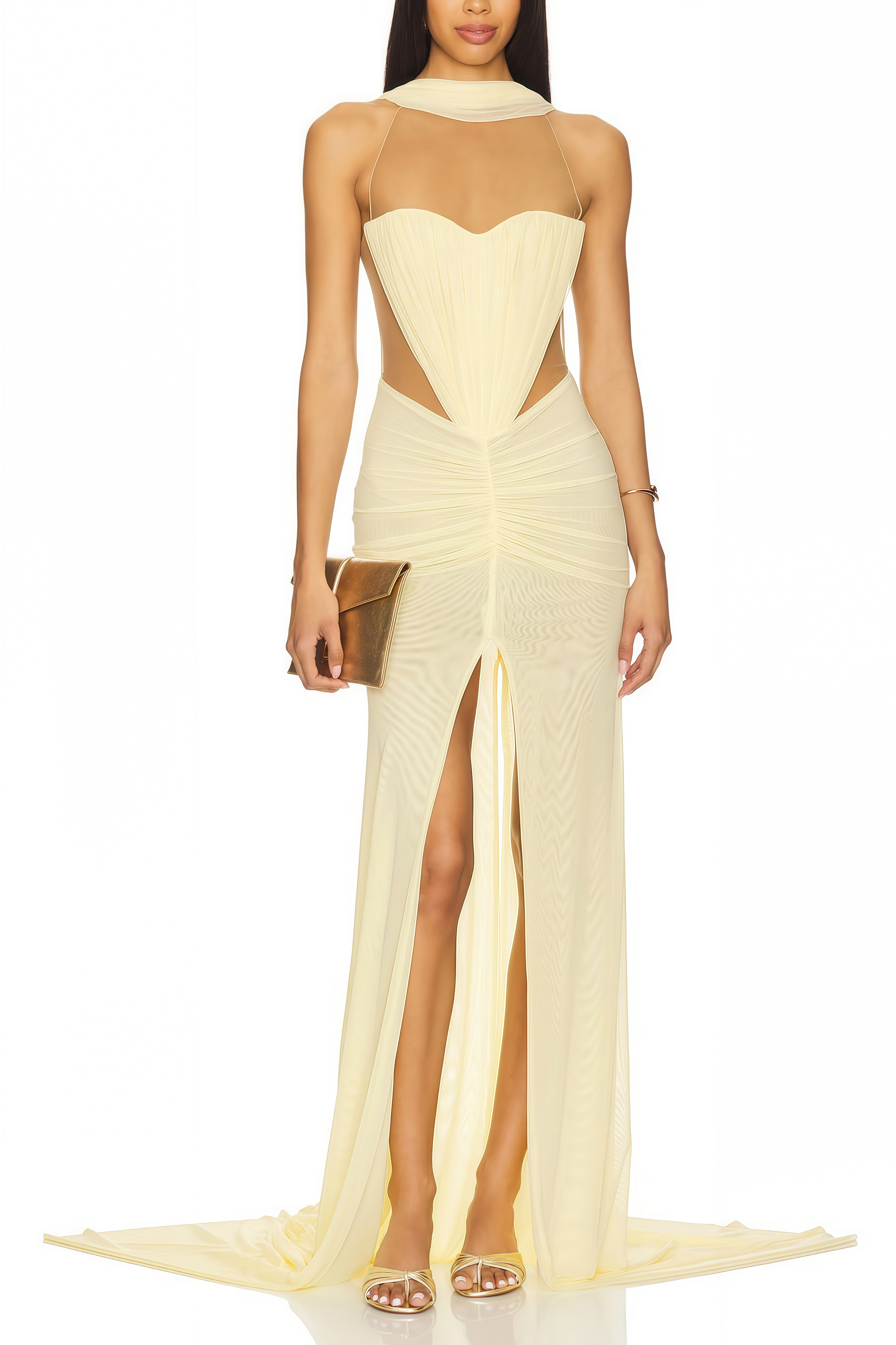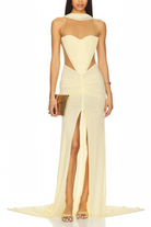 Adalyn Yellow Halterneck Ruched Maxi Dress