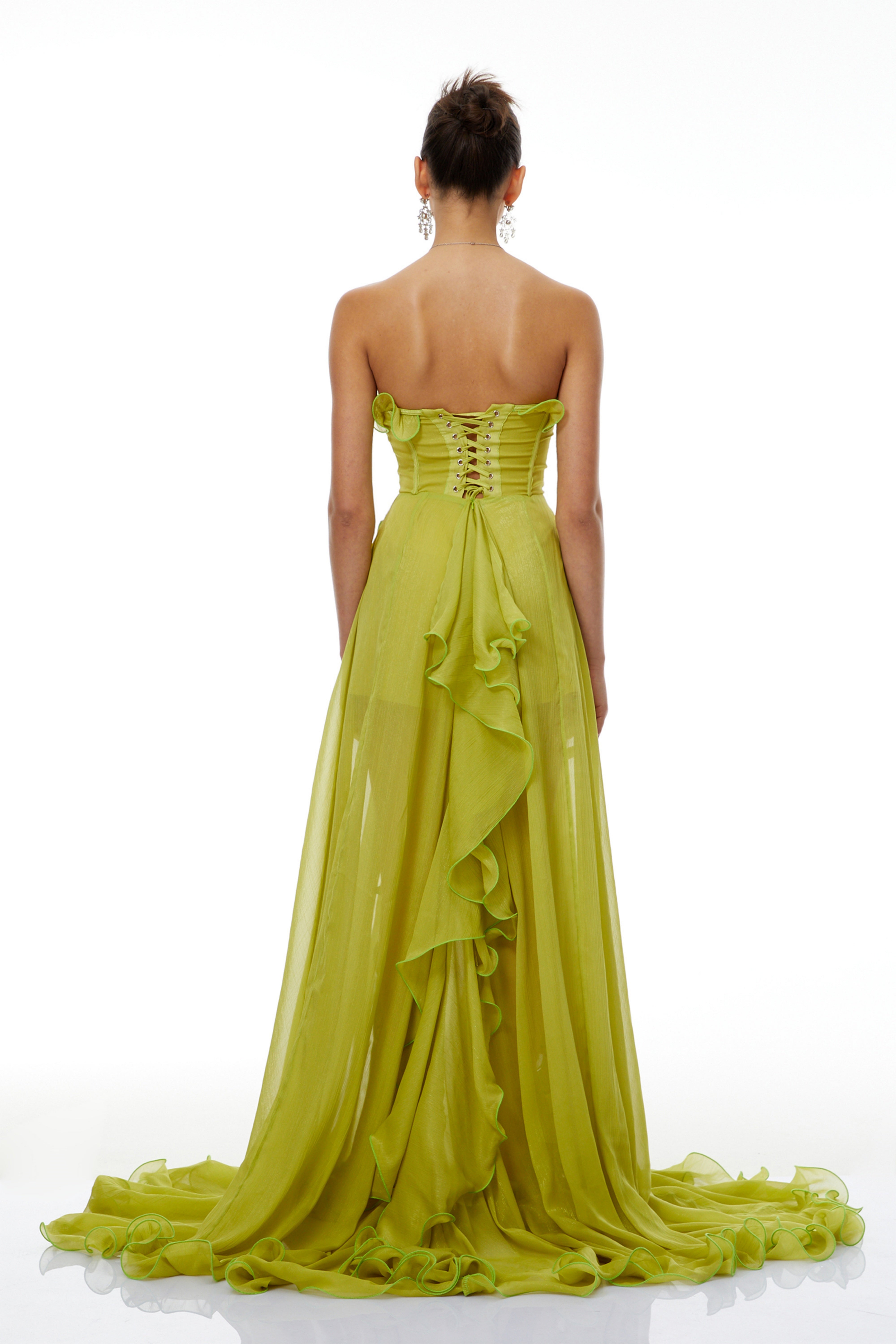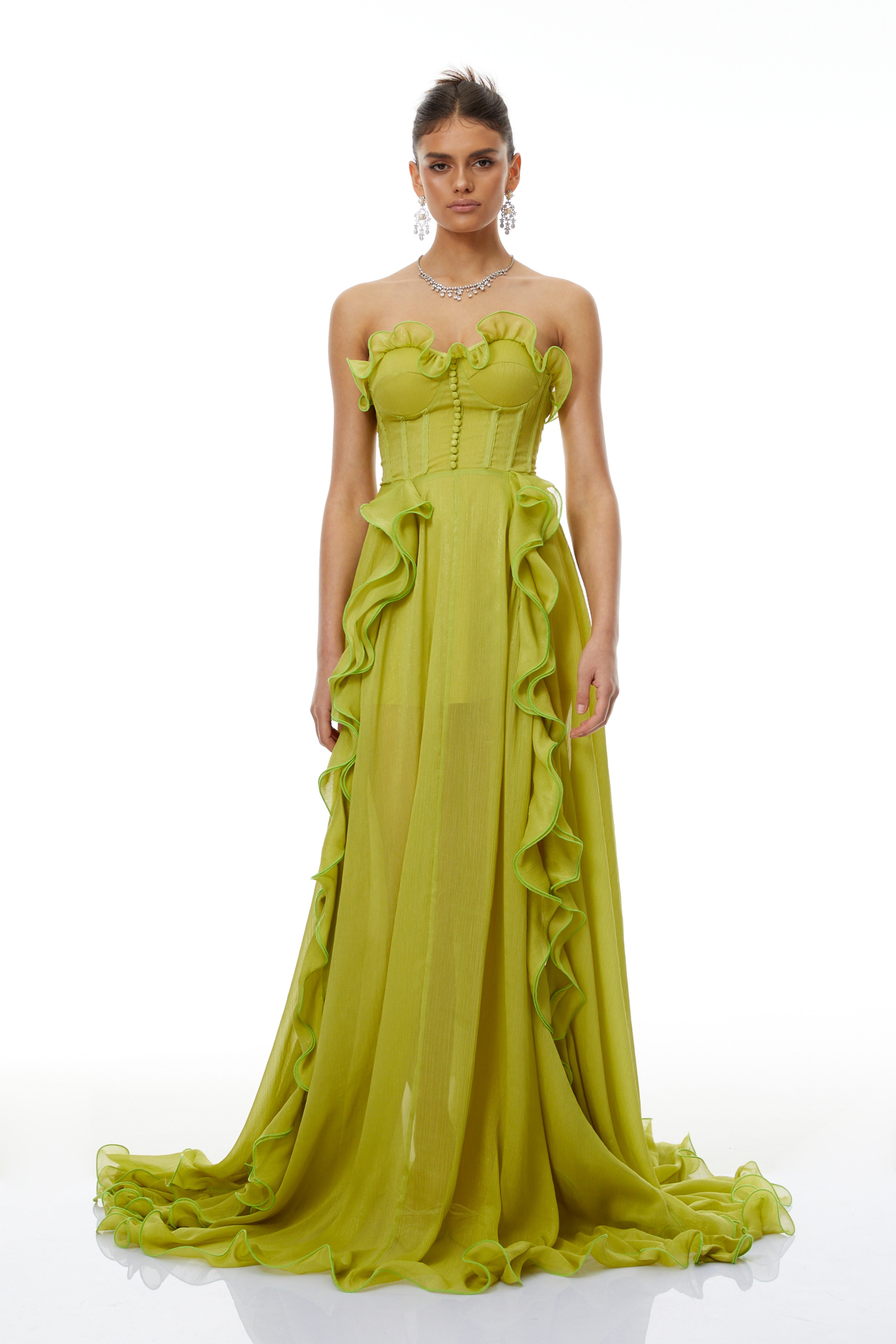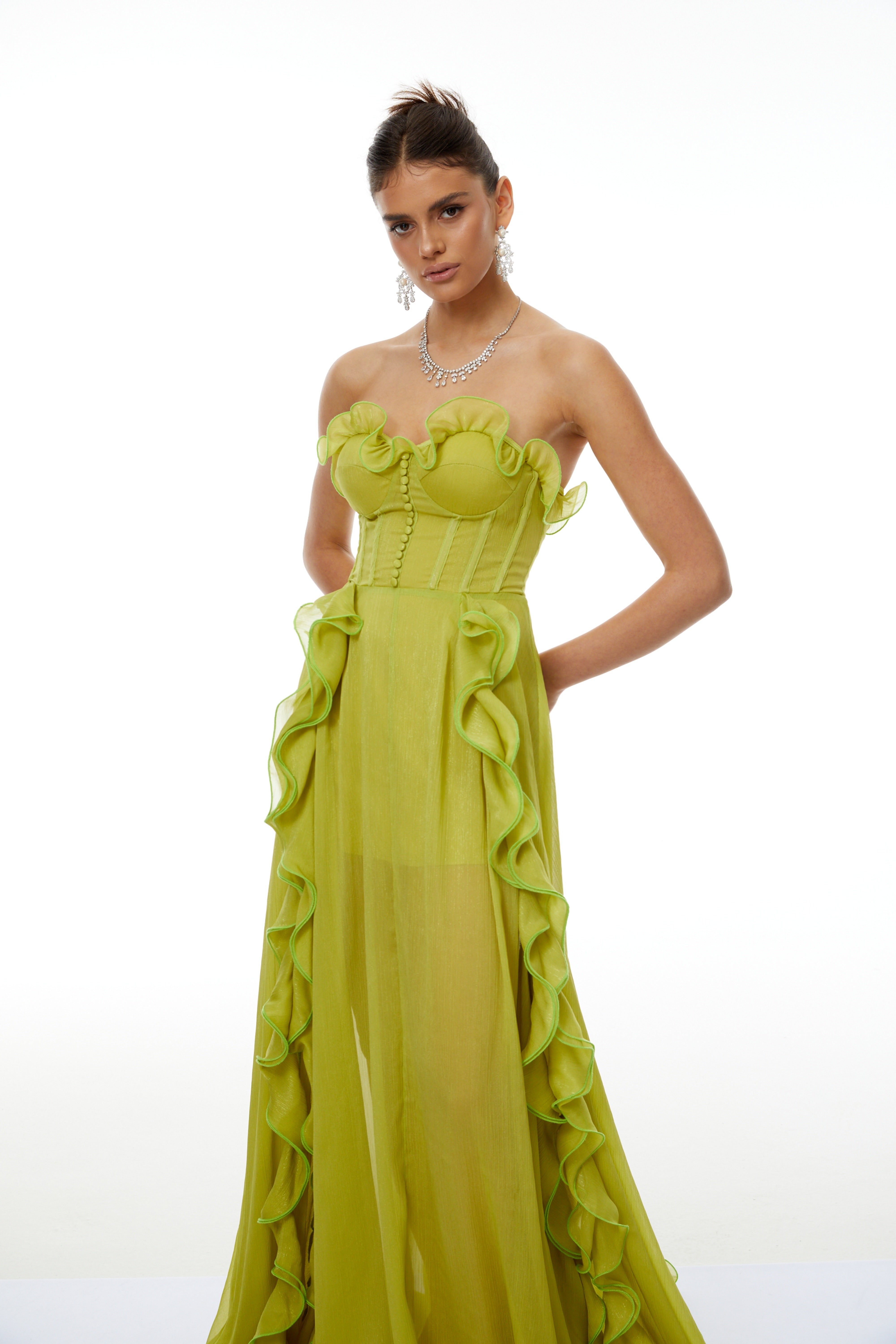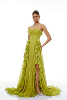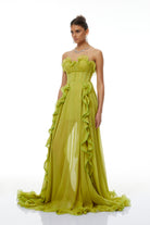 Amélie Green Off Shoulder Ruffled Maxi Dress