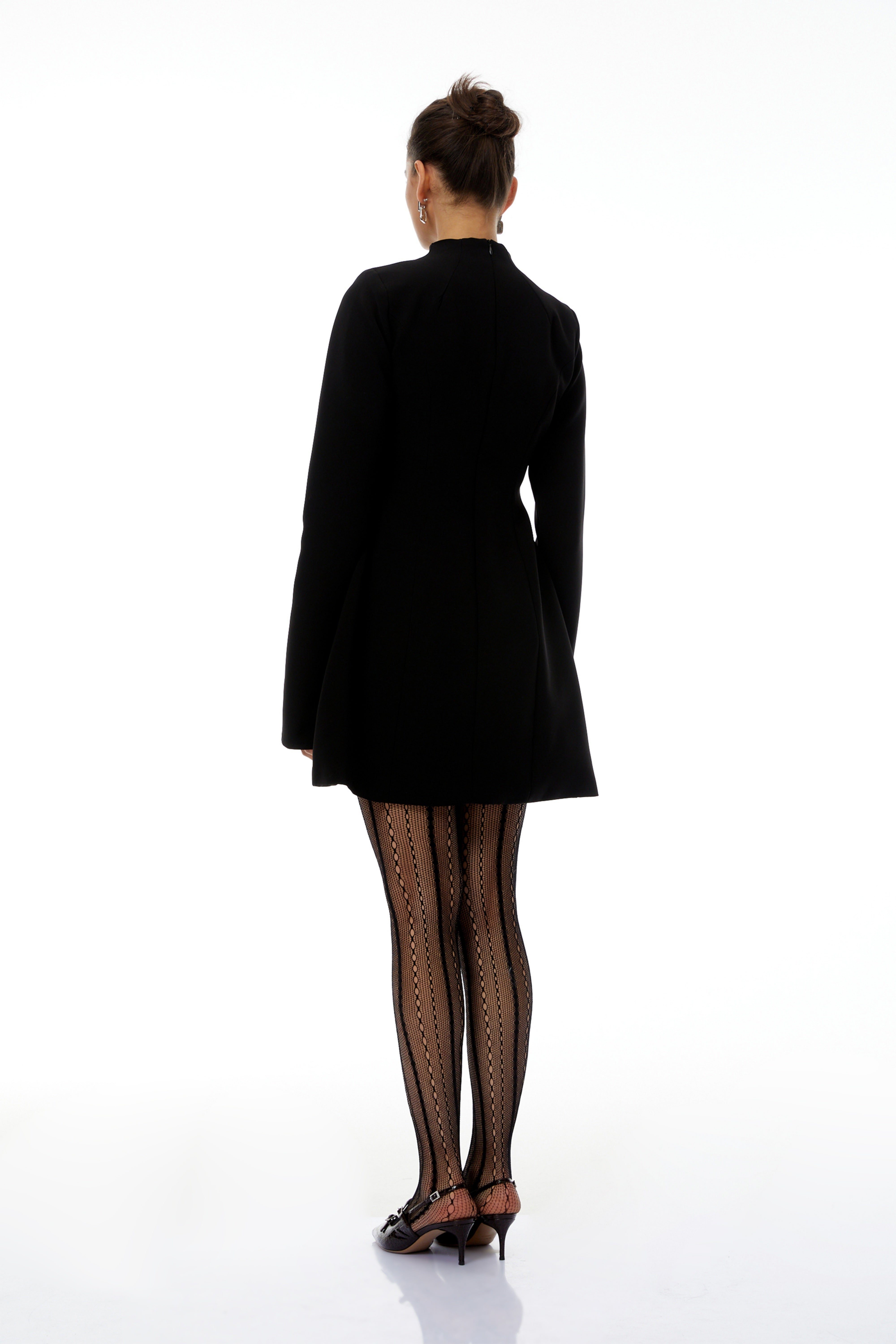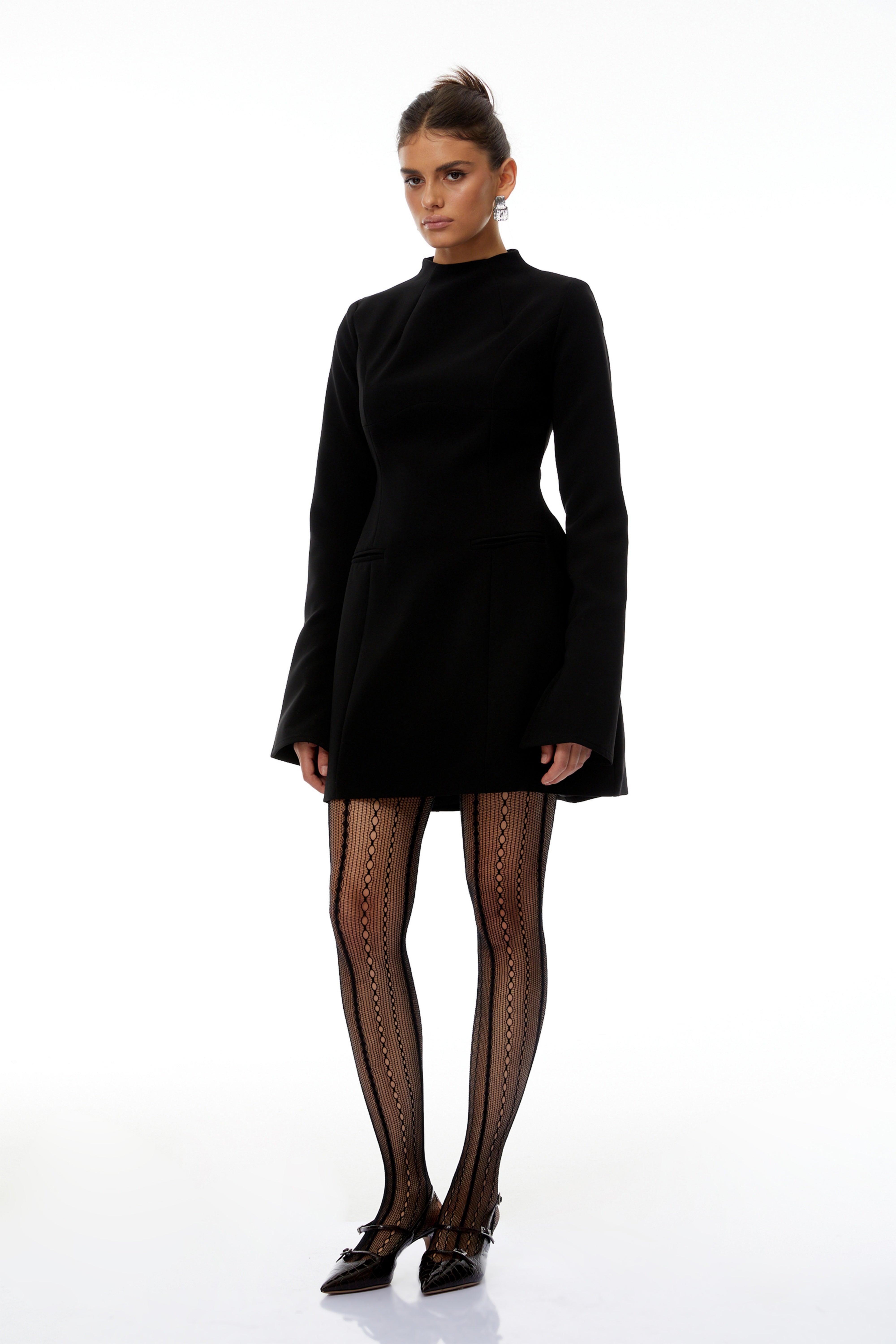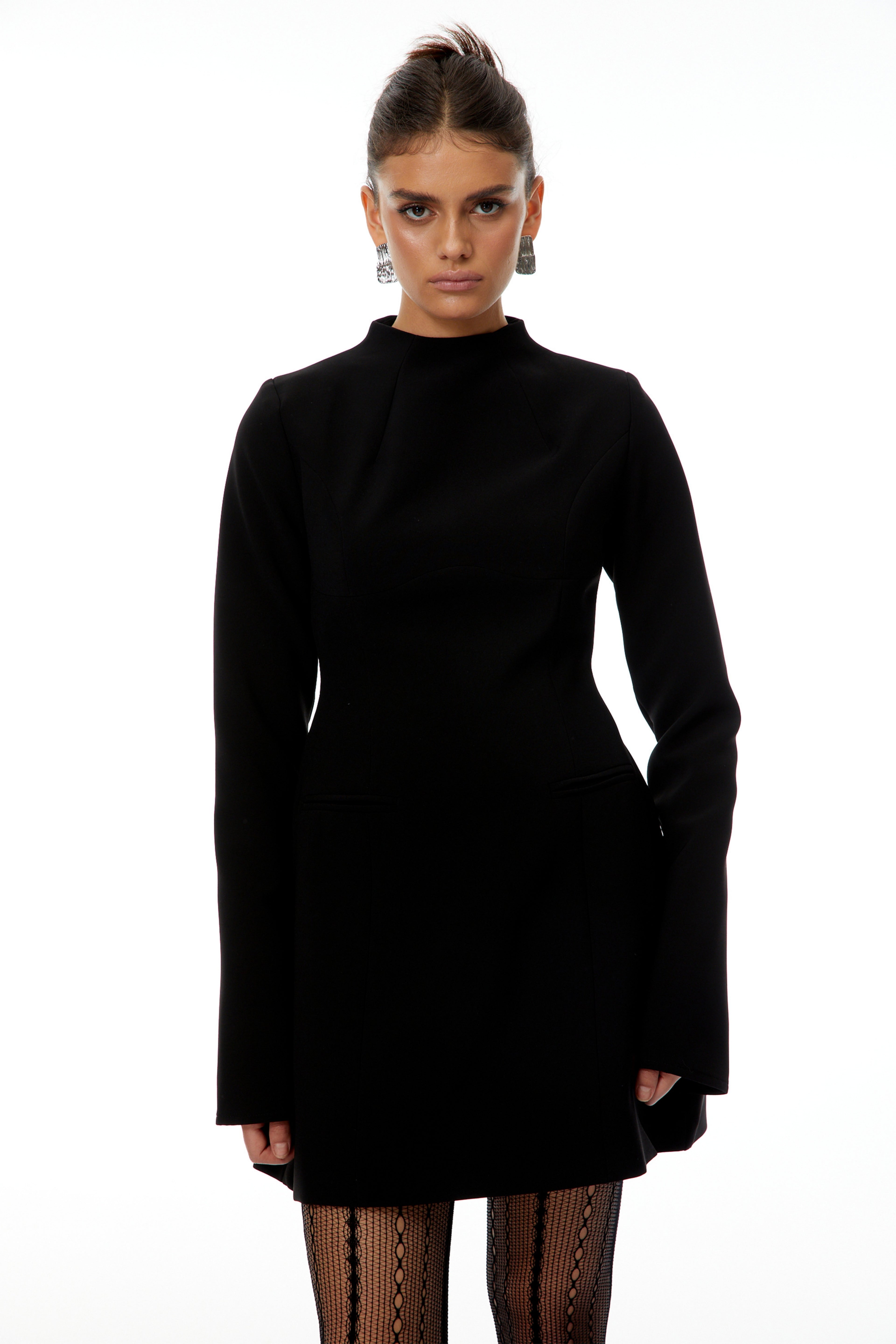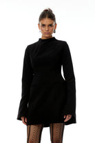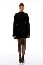 Fleur Black High Neck A line Mini Dress