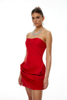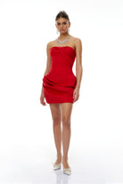 Noémie Red Off Shoulder Ruched Detail Mini Dress