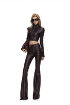 Elara Black Stand Up Collar Leather Coat
