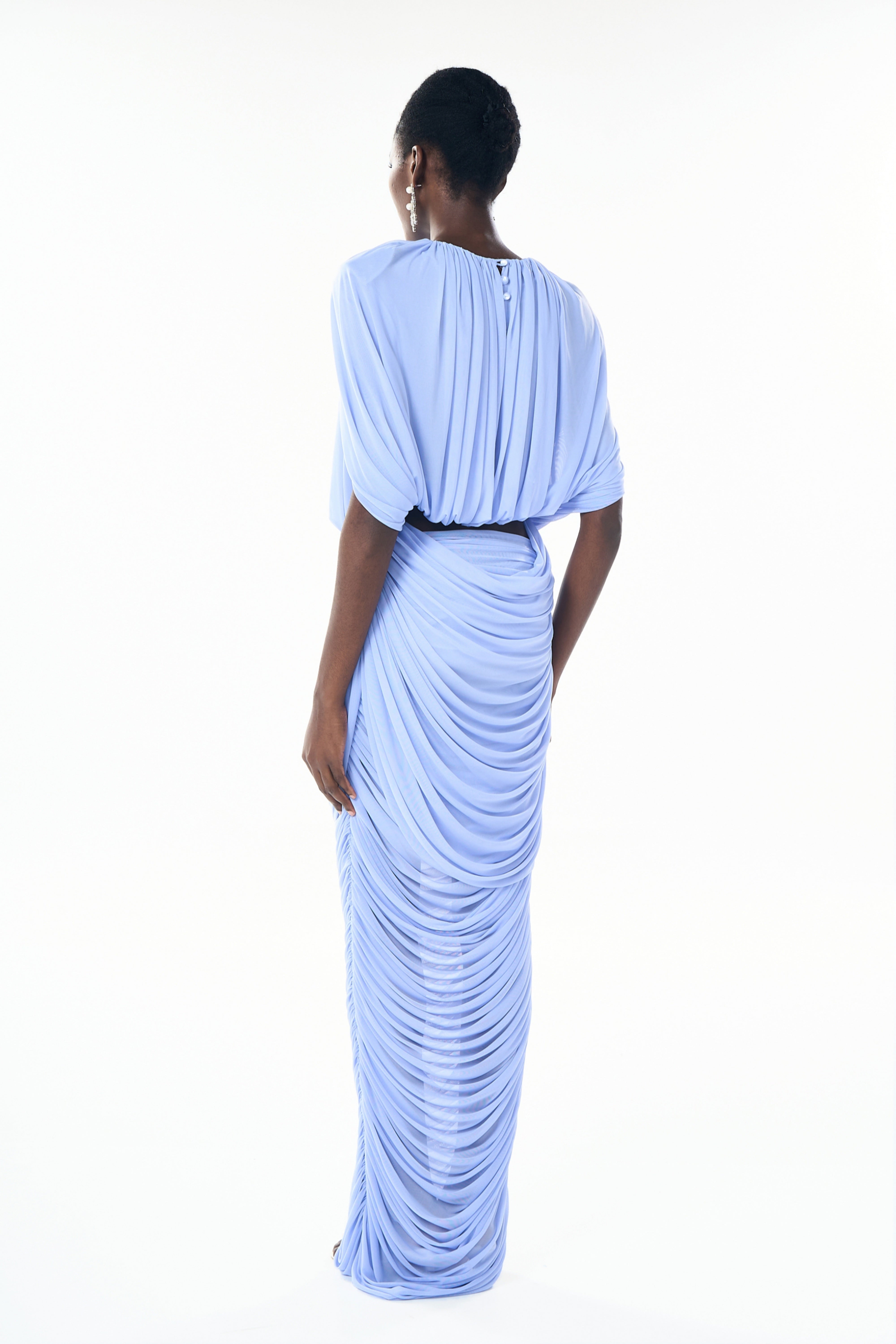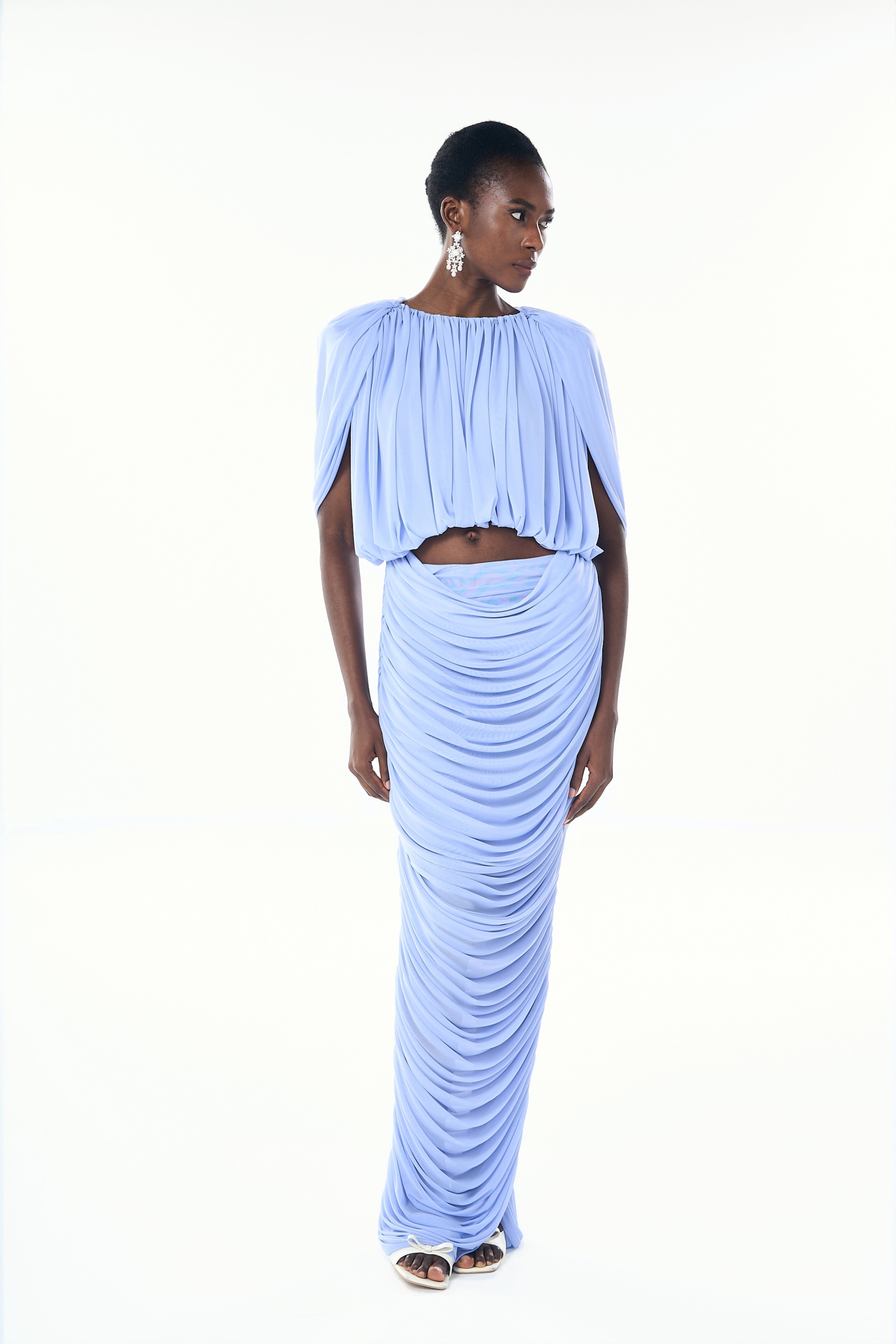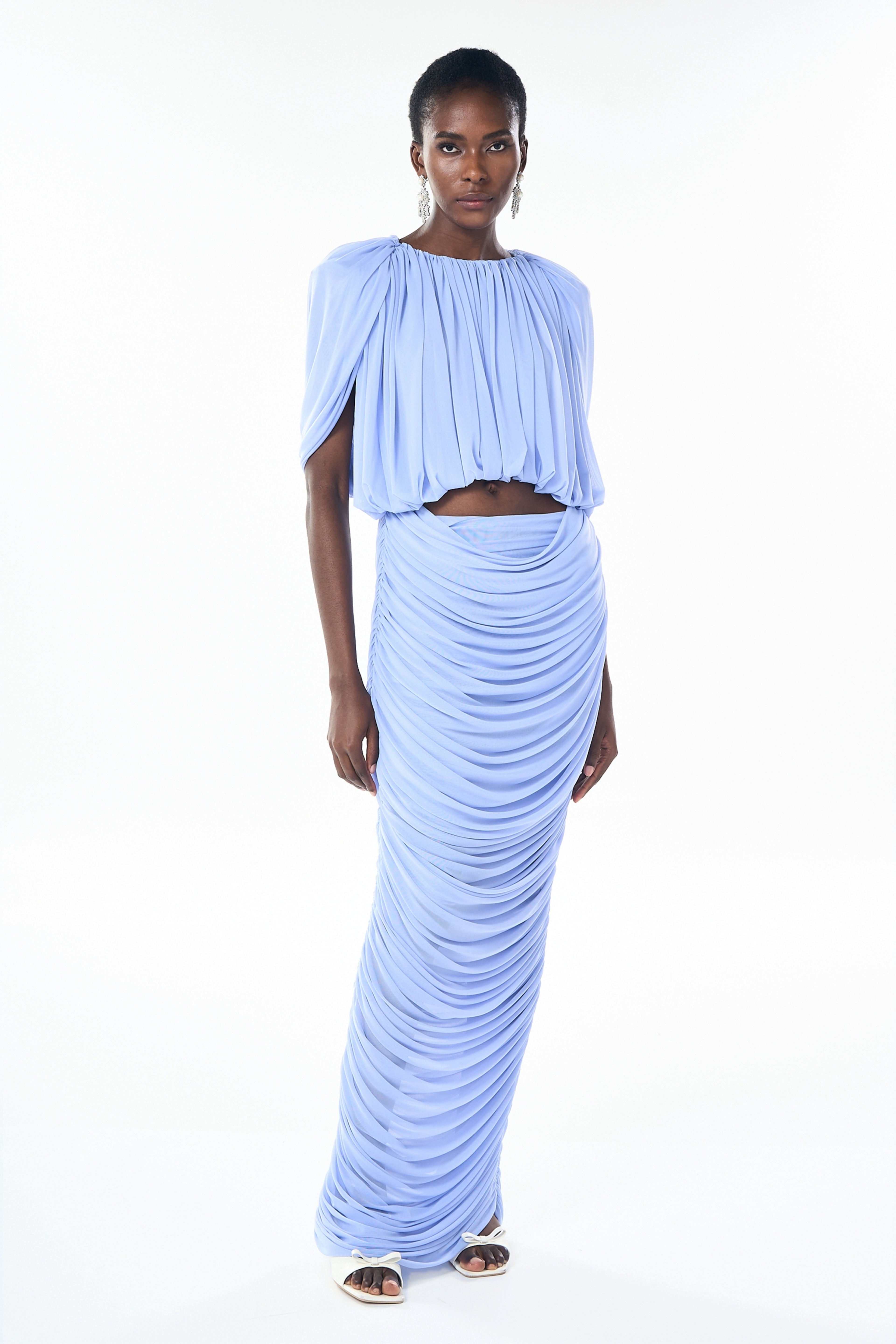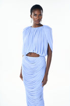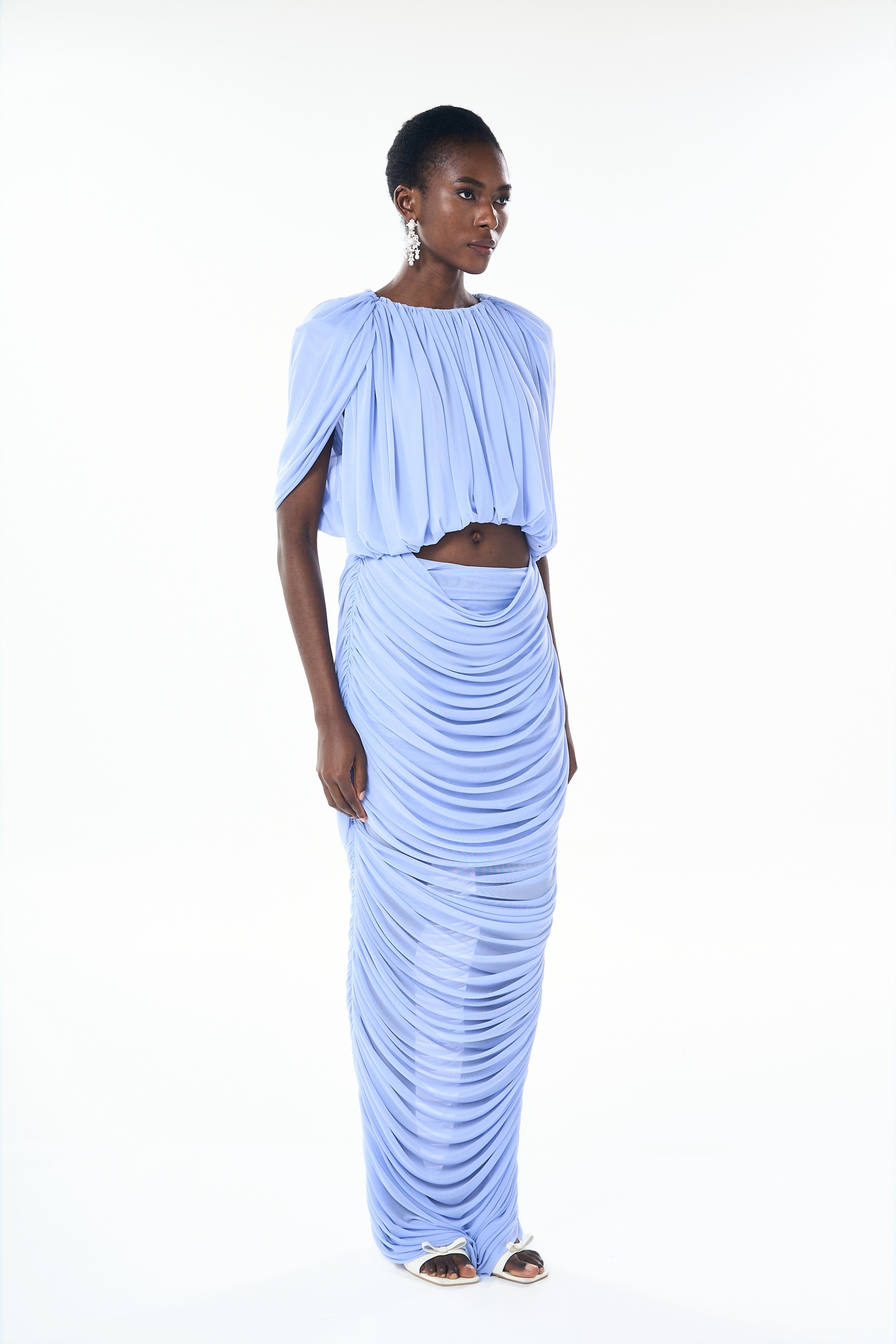 Nydia Baby Blue Ruched Cropped Top & Skirt Set
